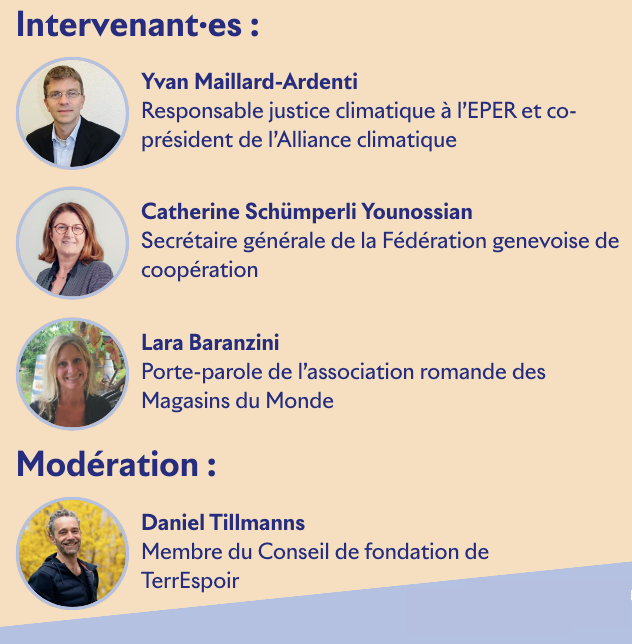 L’association romande des Magasins du Monde participe à une conférence organisée le 24 novembre 2025 à 12h30 par Fair Trade Town Genève dans le cadre de la Semaine du climat 2025. Les intervenants, dont notre porte-parole Lara Baranzini, exploreront les liens entre urgence écologique et inégalités sociales. Ouvert au public.