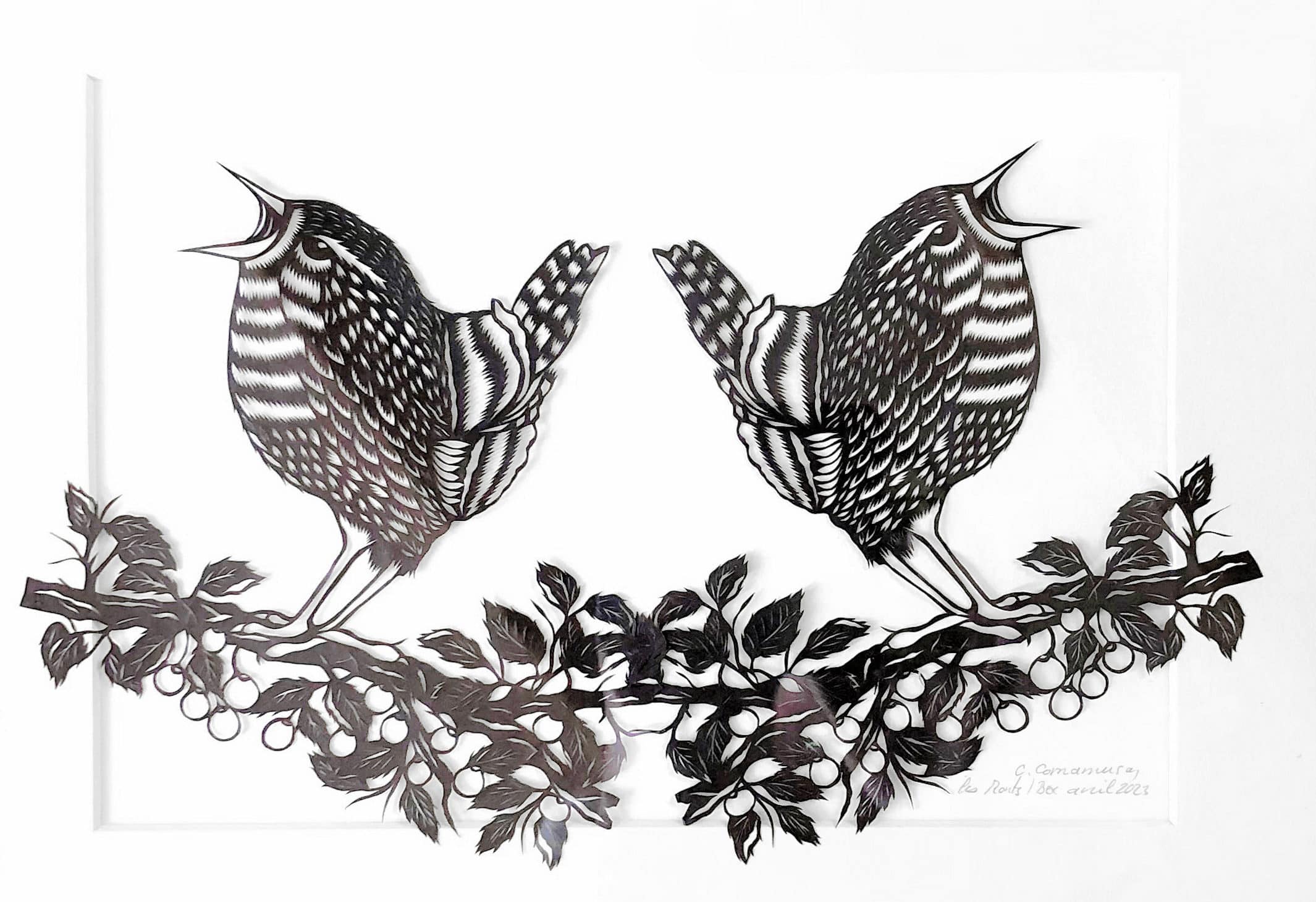 Je pratique cet art depuis de nombreuses années avec passion, née de mes vacances d’enfant à Château-d’Oex. J’aime particulièrement réaliser des tableaux en noir/blanc, inspirés de mon environnement immédiat, fleurs, oiseaux, animaux.